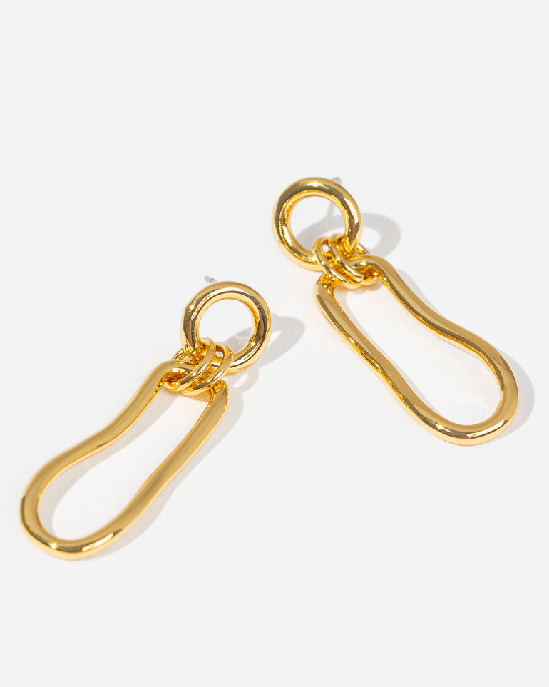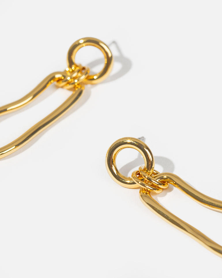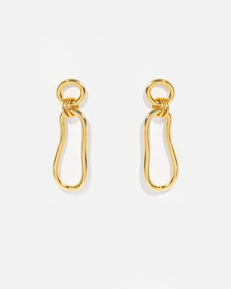 The Coastal Long Drop Earring feature a unique organic link, mimicking the ebb and flow of the Australian coastline. Made with a brass base and finished with opulent 18-carat gold plating.