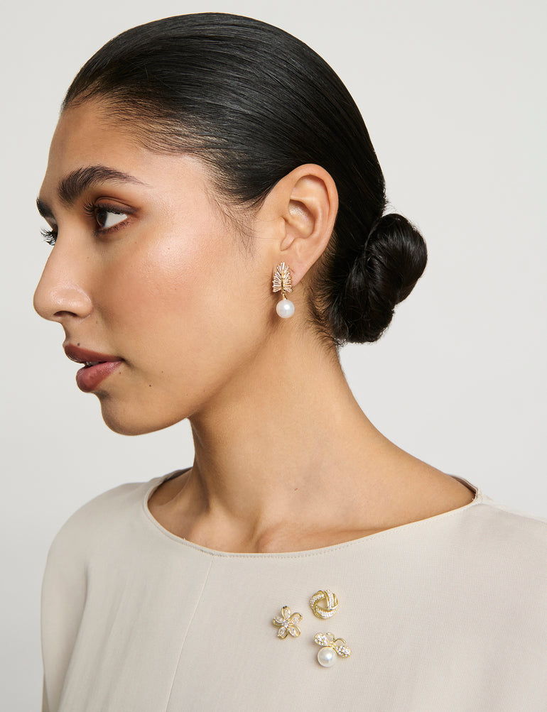 PEARL AND CRYSTAL LEAF DROP EARRINGS
