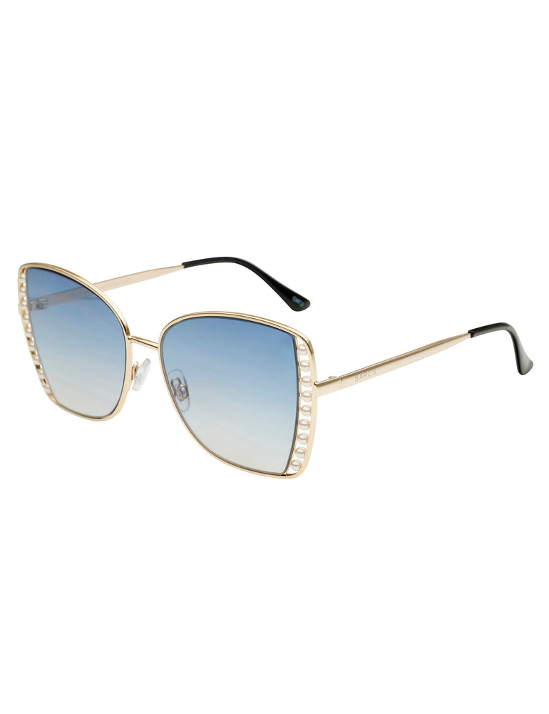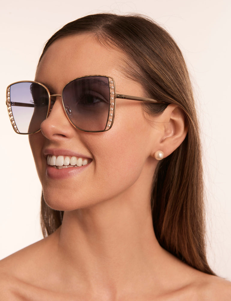 Bring statement style to any look with the gorgeous Whitehaven Sunglasses from Barcs Australia. These elegant square frame sunglasses feature a fine metal frame with gorgeous gold-coloured plating, black tips, and chic champagne faux pearl detailing for an elegant, eye-catching finish to your favourite looks.