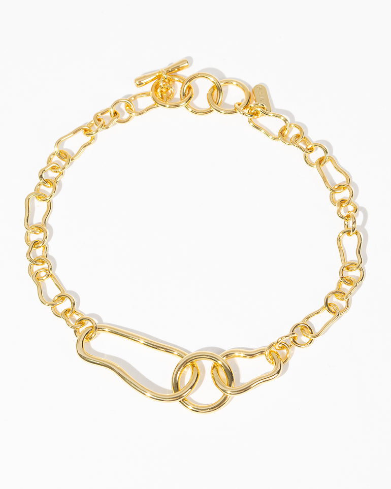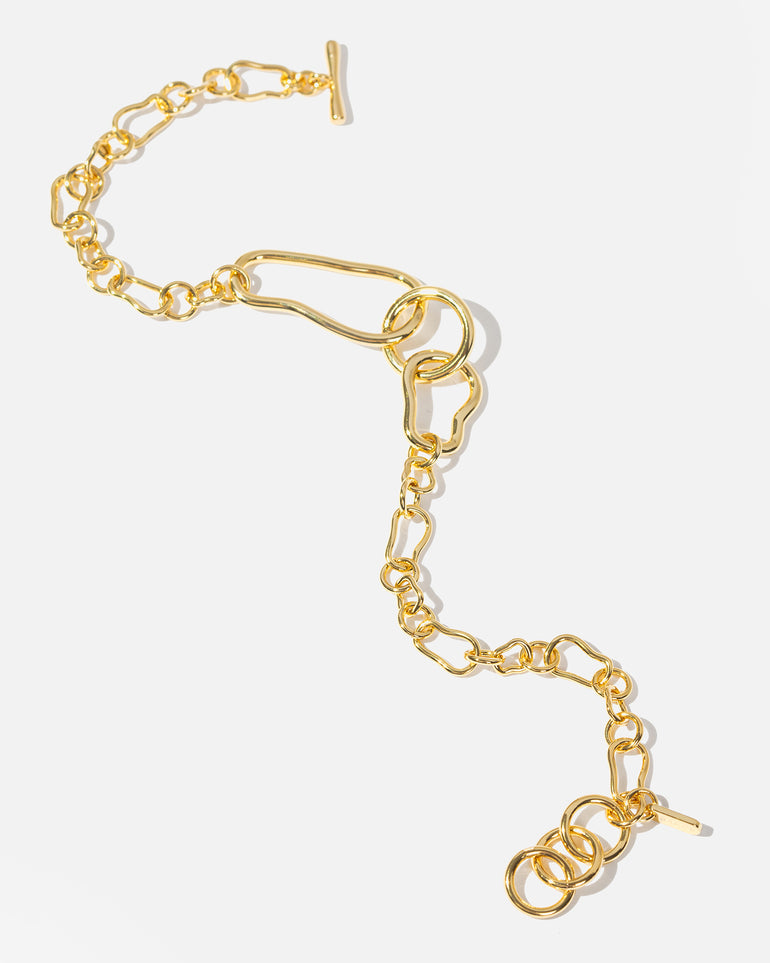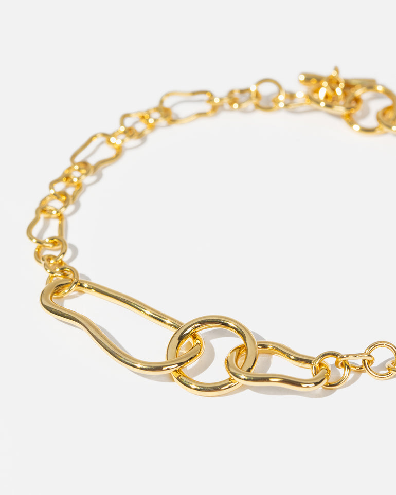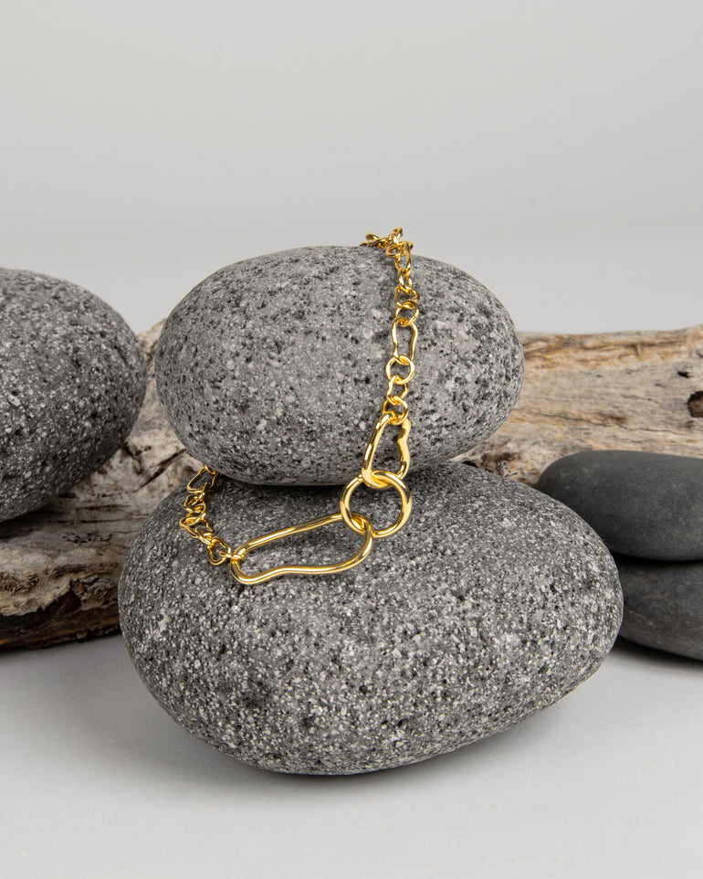 Inspired by the picturesque Australian coastline, the Coastal Fine Chain Bracelet features soft curves, and smooth ridges. These motifs are symbolic of the meandering coastline, organic and fluid, forever shifting. Made with a brass base and finished with opulent 18-carat gold plating.