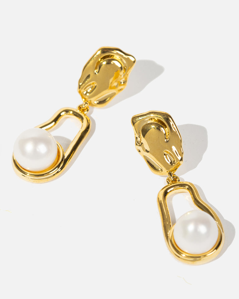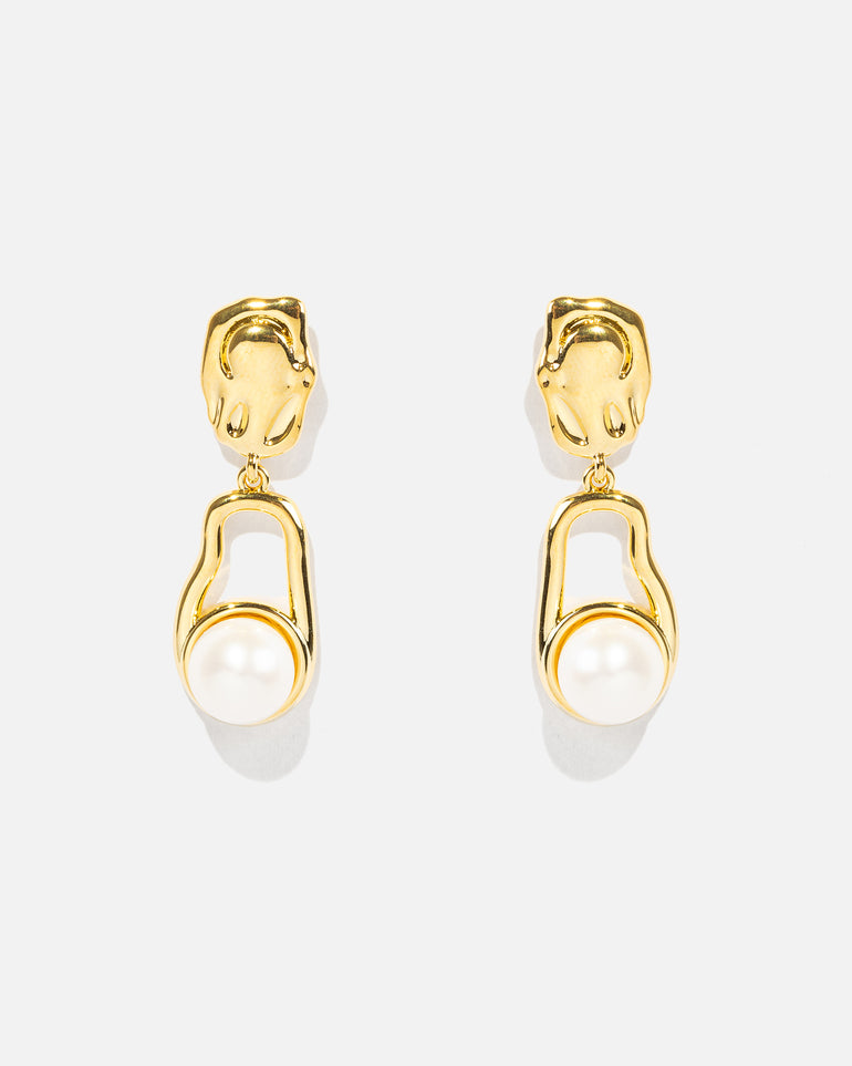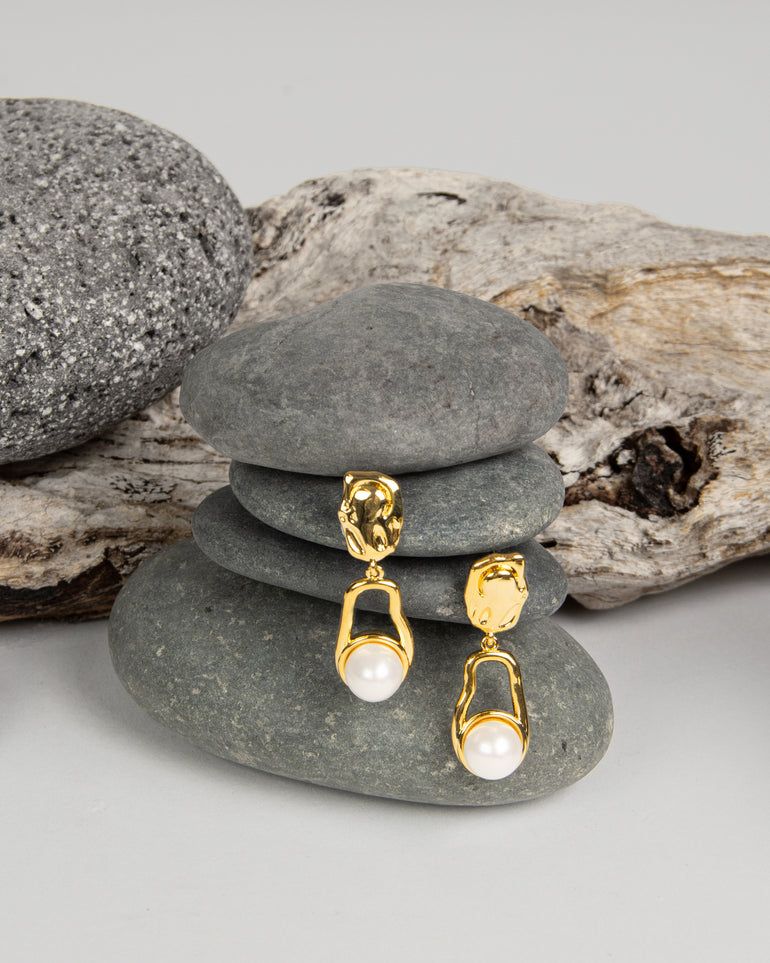 The Coastal Freshwater Pearl Earring are a subtle statement, featuring luxurious freshwater button pearls set in a organic profile. The fluid earring shape is contemporary yet timeless with it's structure and design. Made with a brass base and finished with opulent 18-carat gold plating.