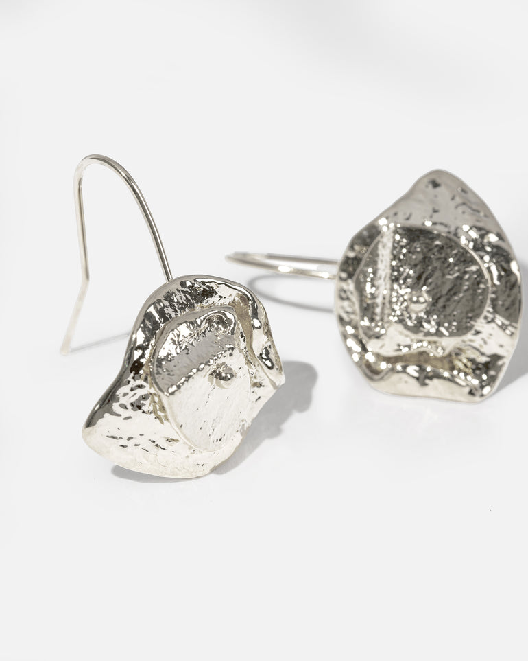 Make a statement with the Dollar Gum Cluster Clip On Earring. Featuring a unique stipple texture and detailed cluster of overlapping leaves. Beautifully crafted using a brass base and plated in an opulent, unique rhodium finish.