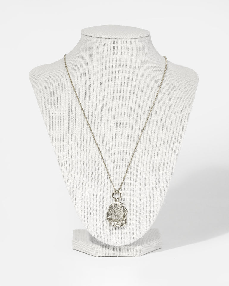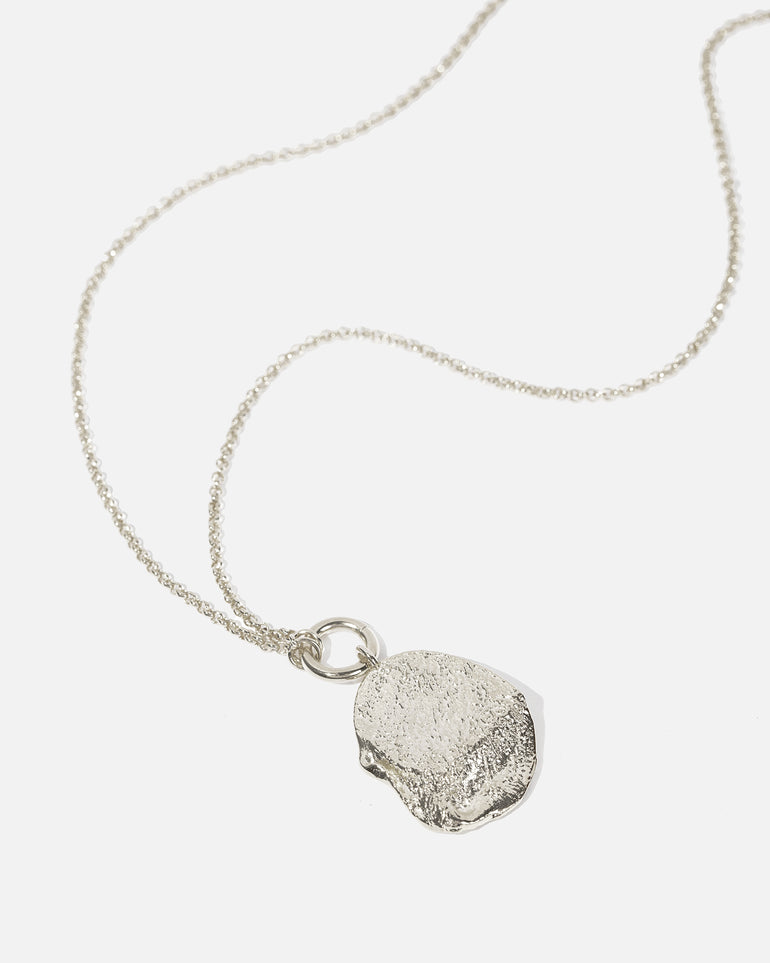 A subtle nod to Australian flora, the Dollar Gum Pendant Necklace features a single textured dollar gum leaf. Beautifully crafted using a brass base and plated in an opulent, unique rhodium finish.