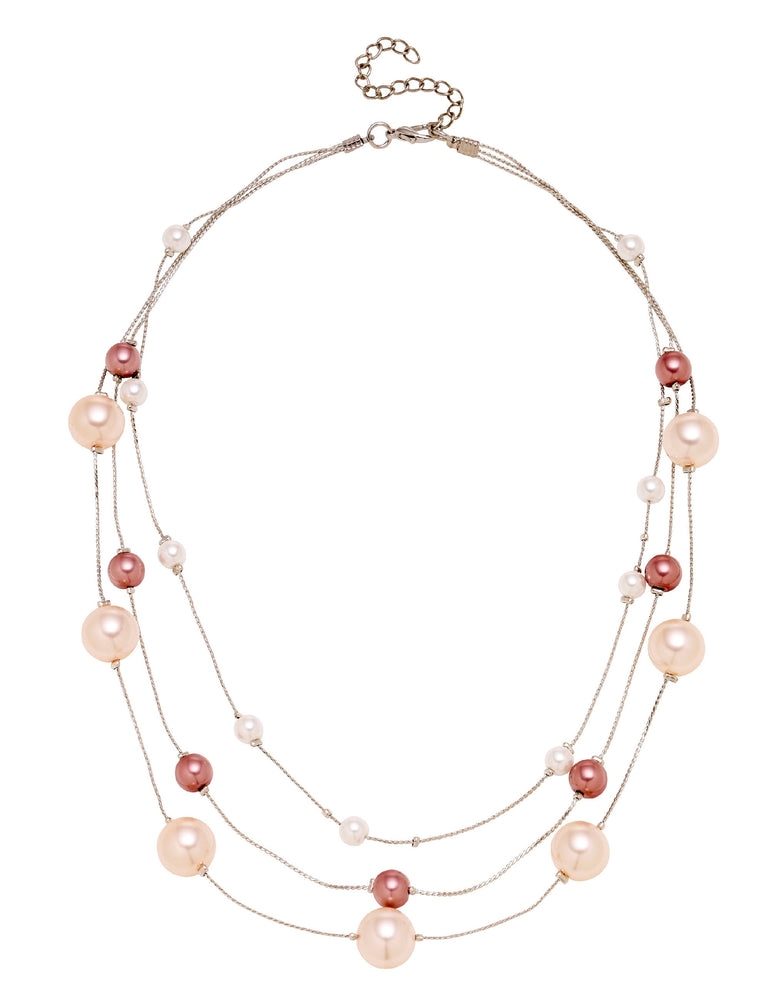 The beautiful Fine Strand Pearl Station Necklace from Barcs Australia are a stunning choice to dress up your everyday style or bring statement finish to smart blouses and dresses. This triple-strand necklace features glossy glass pearls in soft blush and deep rose pink, putting a stylish, modern spin on classic, timeless style.