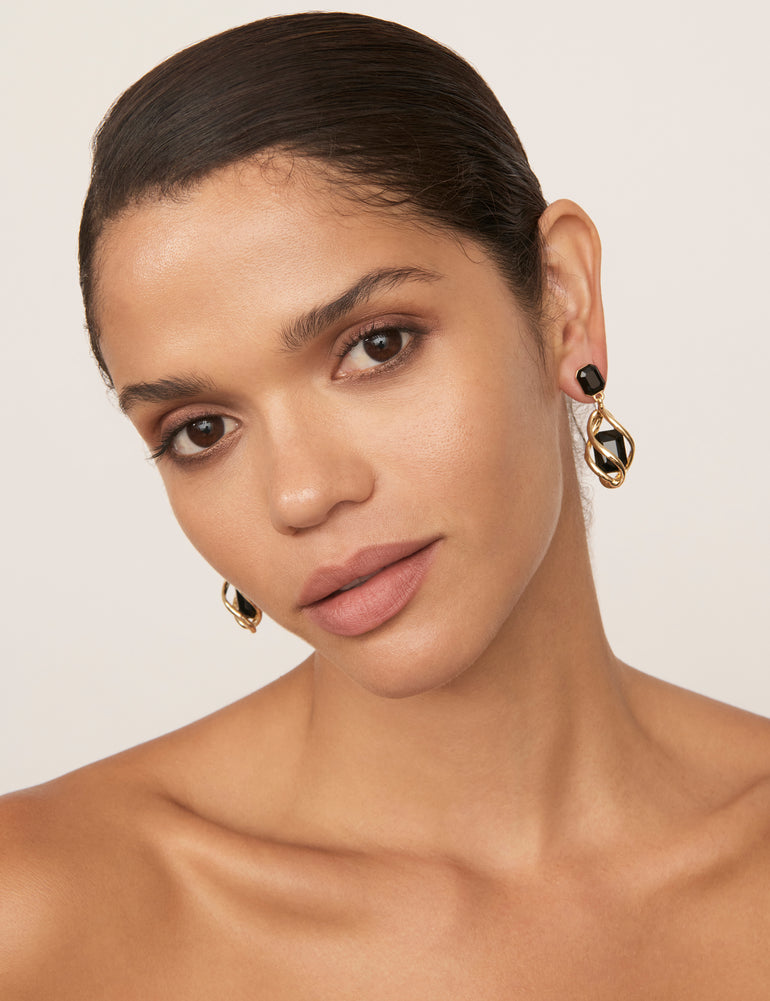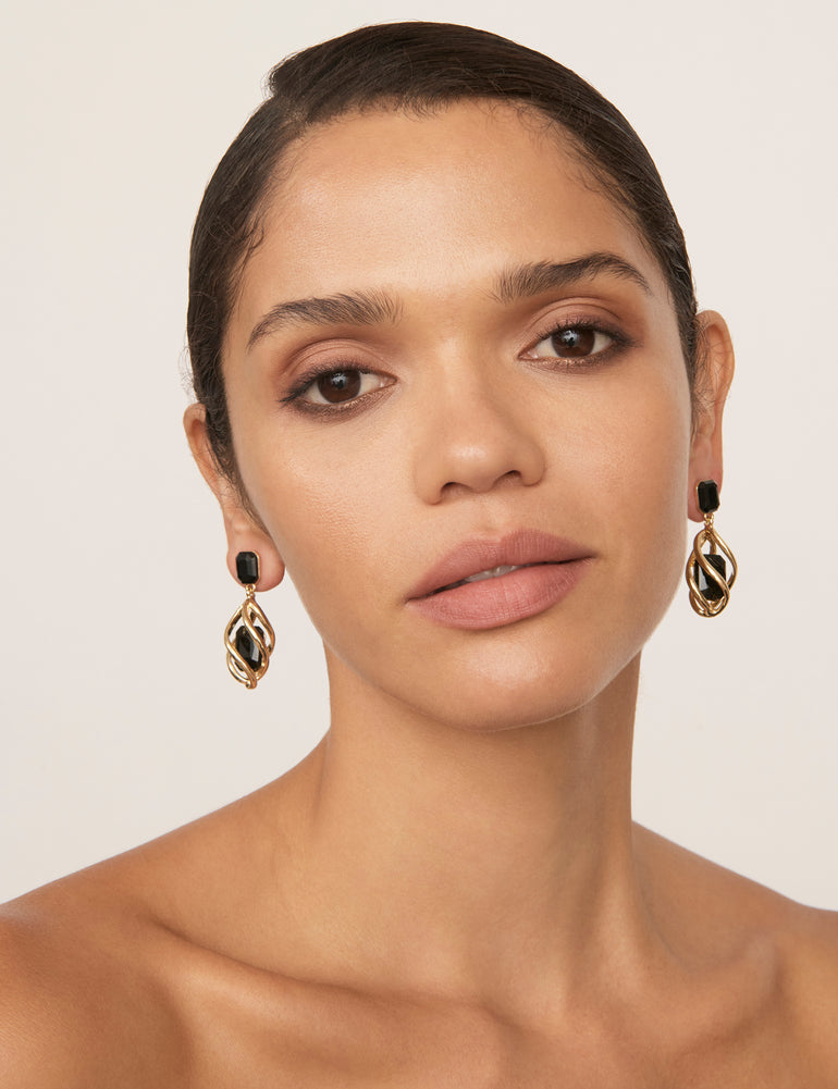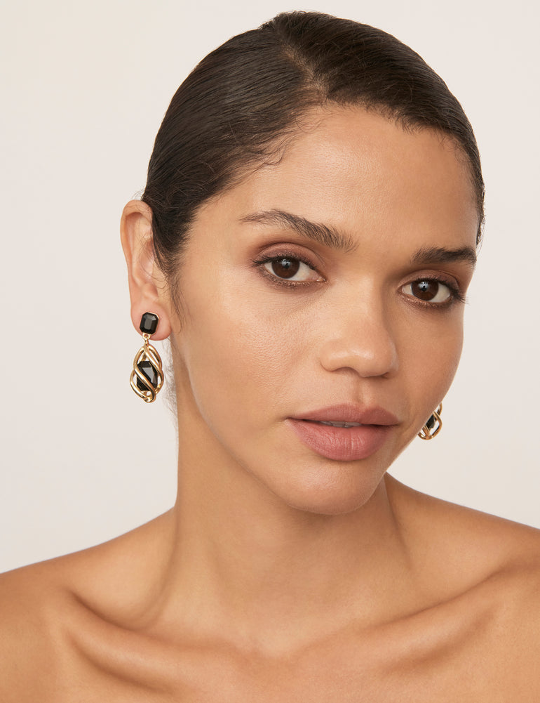 Balancing modern elegance with a unique sense of style, the Mistral Stone Earrings from Barcs Australia are a beautiful choice to bring an eye-catching finish to any look. These stunning earrings feature black stones and a spiral cage drop in brilliant gold-coloured plating, encasing faceted black stones for gorgeous shine with a touch of drama.