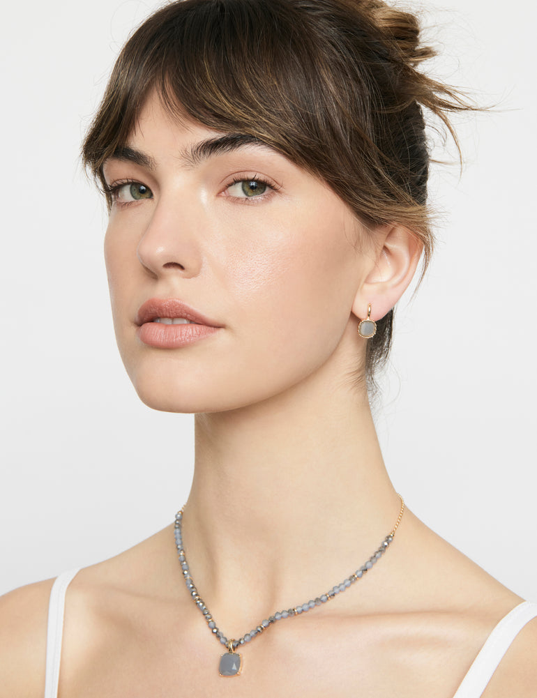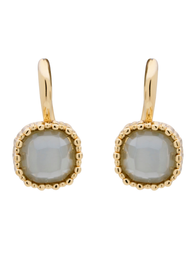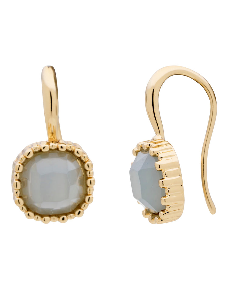 Balancing old-world inspiration with contemporary elegance, the Small Square Drop Earrings are a beautiful addition to your collection. These dainty earrings feature square faceted stones in a gorgeous pale blue, set in bright gold-coloured plating with a finely detailed trim.