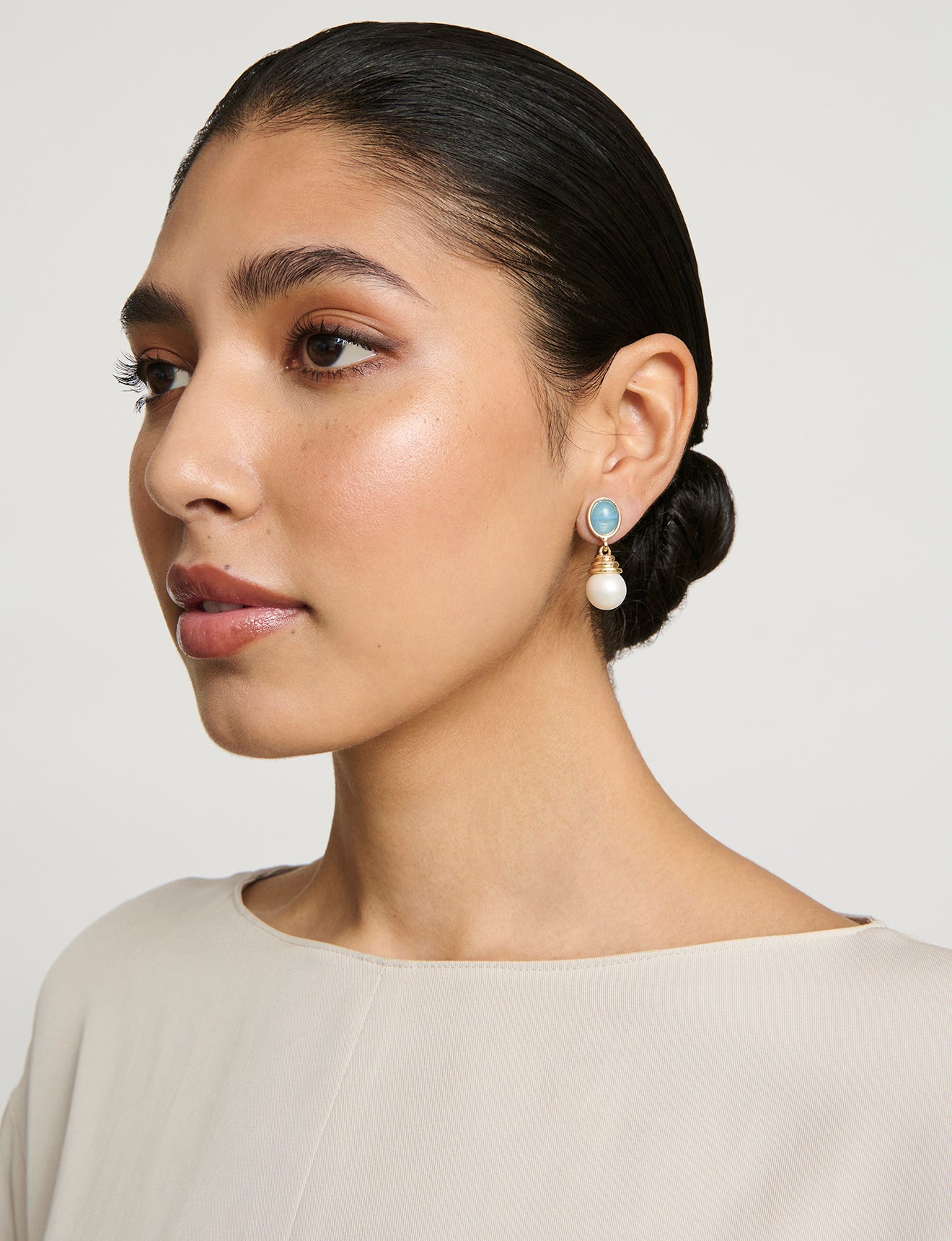 PEARL AND CRYSTAL LEAF DROP EARRINGS
