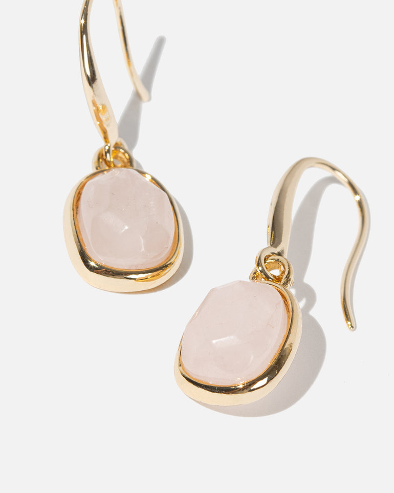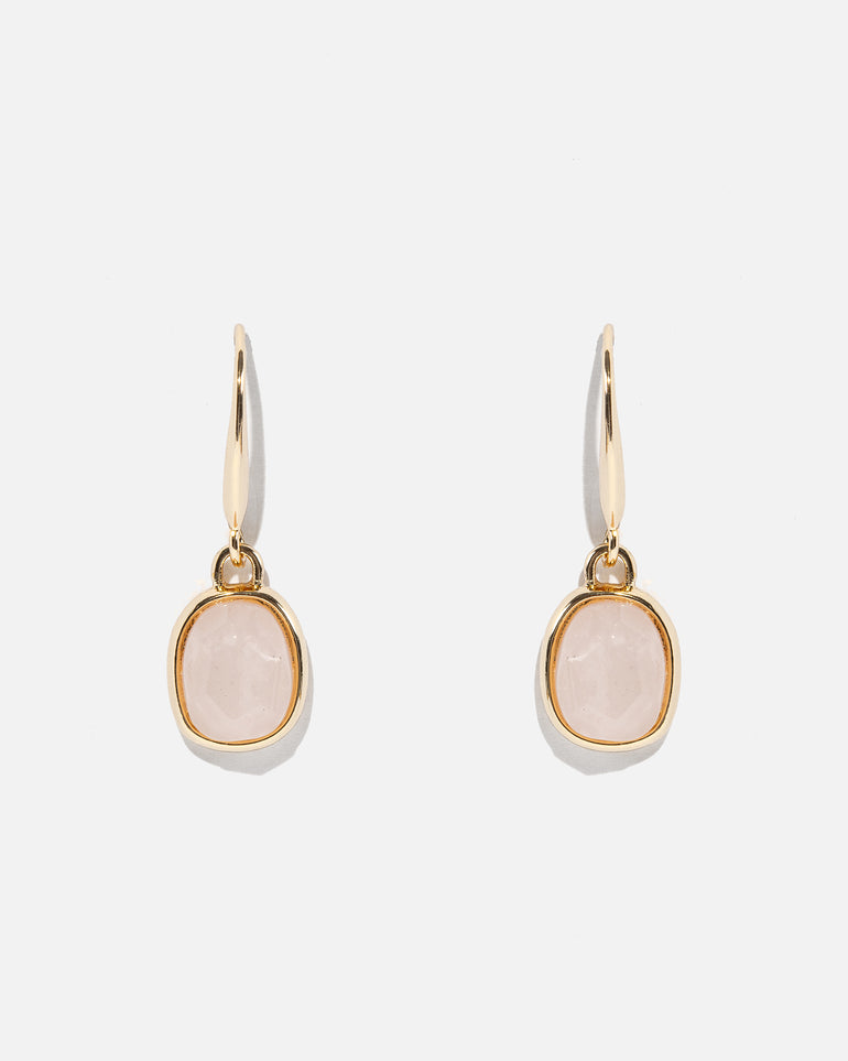 The Serene Dangle Earrings are an elegant and chic design featuring bezel set semi-precious stone with fishhook dangle findings. Dress up any outfit with these refined and poised pops of colour.