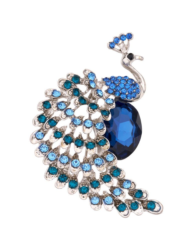 A decorative peacock motif brooch from Barcs Australia. The mix of tonal coloured stones in the design makes this brooch a delightful addition to your outfit.