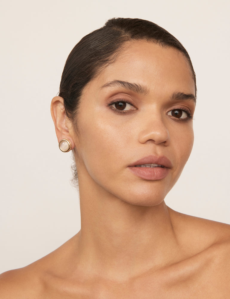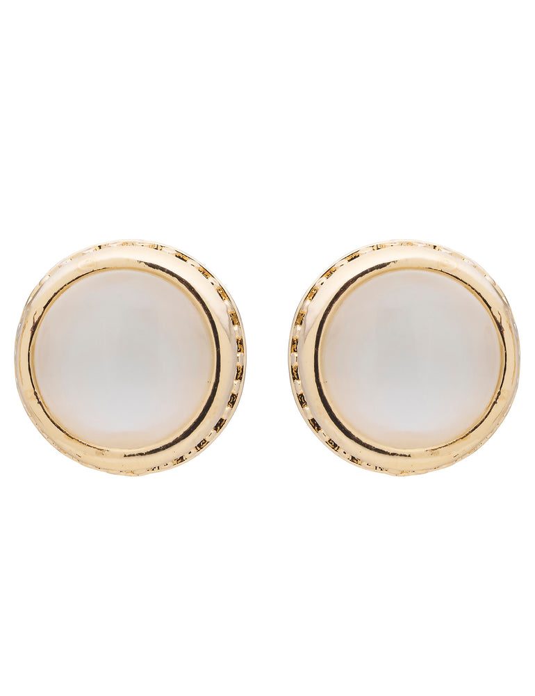 For a subtle yet stunning touch of shine to complete your look, choose the Full Moon Detail Rim Earrings from Barcs Australia. With glossy round stones in a chic natural tone, polished gold-coloured plating, and fine stone detailing for a hint of sparkle.