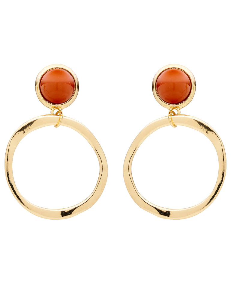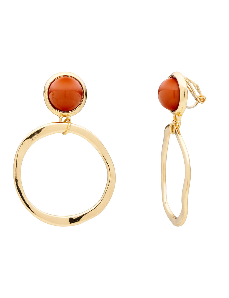 The Colour Spot Hoop Clip On Earrings from Barcs Australia bring gorgeous shine and a pop of colour to day or evening outfits. These elegant clip earrings feature ring drops in gold-coloured plating and polished stone accents in vibrant orange.