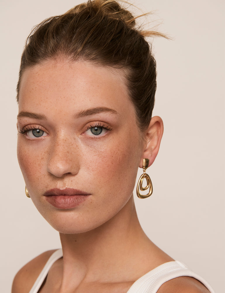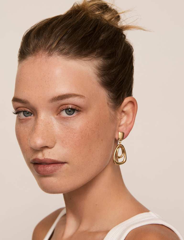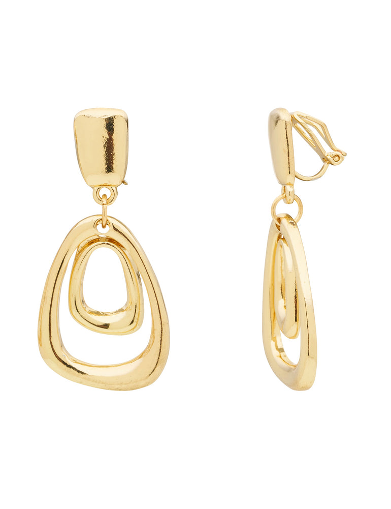 Give any outfit a touch of statement style with the gorgeous Door-Knocker Clip Earrings from Barcs Australia. These eye-catching earrings feature layered drops in polished gold-coloured plating, giving any look a bright, bold finish.