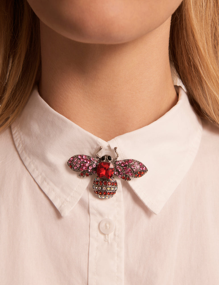 The gorgeous Jewel Bee Brooch from Barcs Australia is a striking piece that’s sure to catch the eye. This brooch is a stunning finishing touch for your favourite dresses, blouses, and blazers, featuring a faceted feature stone in deep red, mixed stone detailing and fine sparkling accents set in bright silver-coloured plating.