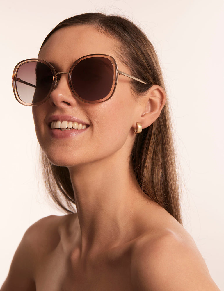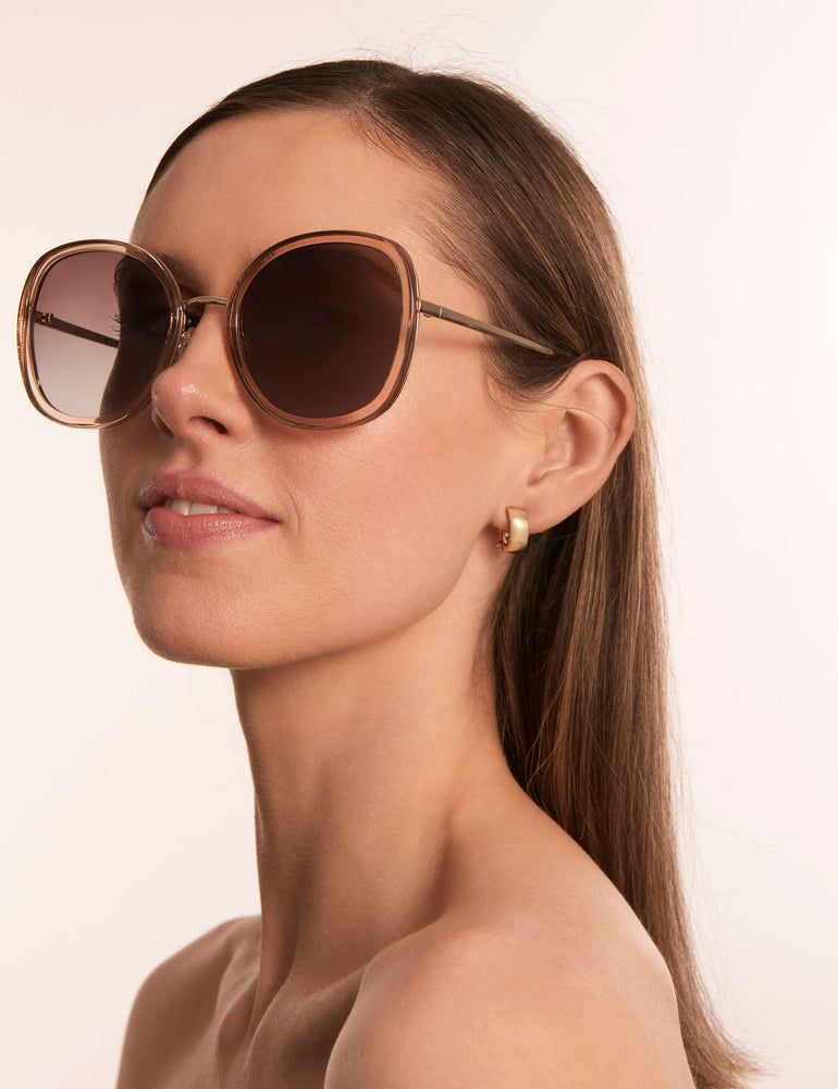 Perfect for finishing your everyday spring and summer style, the Pippi Sunglasses are a stunning choice to complete your favourite looks. These gorgeous round frame sunglasses feature crystal blush pink front and tips and light gold-coloured plating for a luxe finishing touch to your look. With polarised lenses in a chic brown-to-grey gradient, these stylish sunnies can also help reduce glare and eyestrain.
