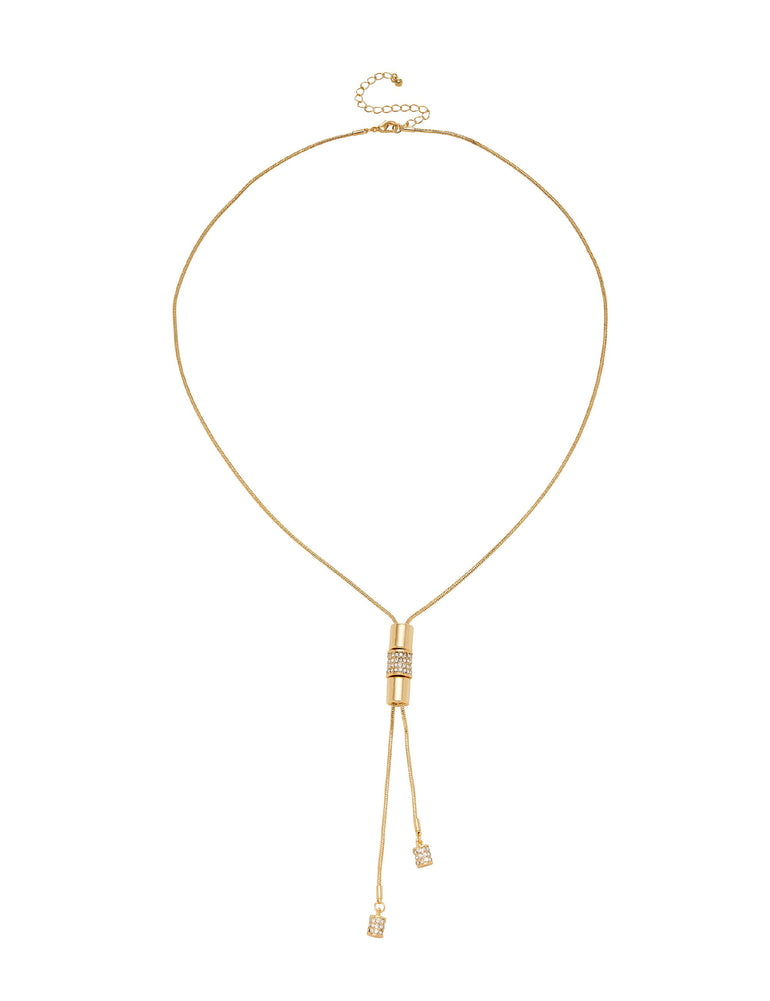 Capture modern elegance with the beautiful Satellite Pave Lariat Necklace from Barcs Australia. This elegant lariat necklace features sleek gold-coloured plating and fine stone detailing for a sparkling finish. Pair it with chic blouses, cocktail dresses or evening wear for a polished finish to your favourite outfits.