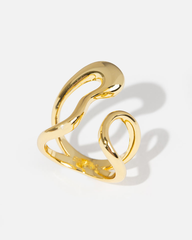 The Coastal Wave Ring mimicks the curves of the coastline and ocean waves with it's fluid structure. Made with a brass base and finished with opulent 18-carat gold plating.