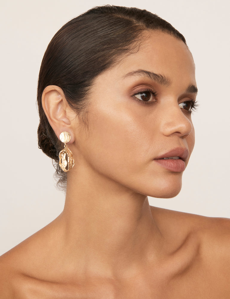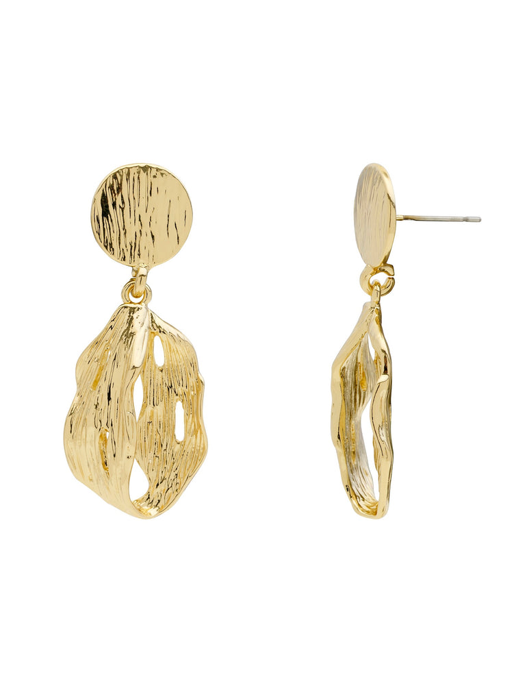 Complete your look with the Leaf Loop Earrings from Barcs Australia. These beautiful earrings feature beaten loop drops in brilliant gold-coloured plating with a textured finish, perfect for capturing unique style and stunning shine to dress up any outfit.